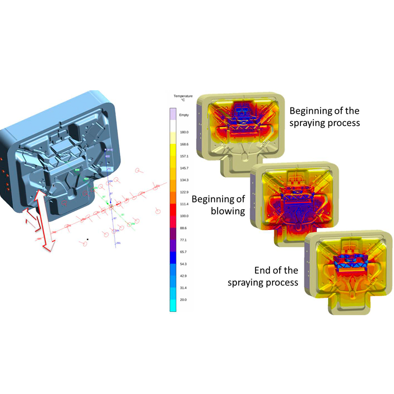 结构件的特征在于较大、复杂和薄壁的几何形状,以及用于安装或紧固点的部分厚壁区域。在该背景下,最小拔模角度和对铸件表面质量的高要求给喷涂工艺带来了特别的挑战。具有高优先级的是防止由于传统水性喷涂而引起的热冲击导致的过早模具损坏。